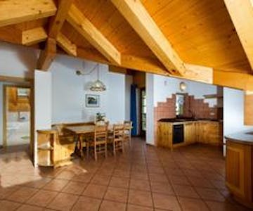 Tipico appartamento di montagna con tetto con le travi a vista, perfetto per 7 -9 persone