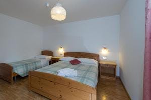 Typical mountain apartment furnished in pine wood with a exposed-beams roof, perfect for 4-6 people